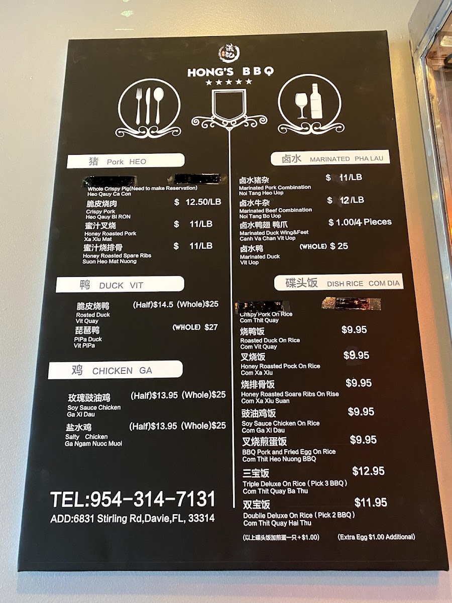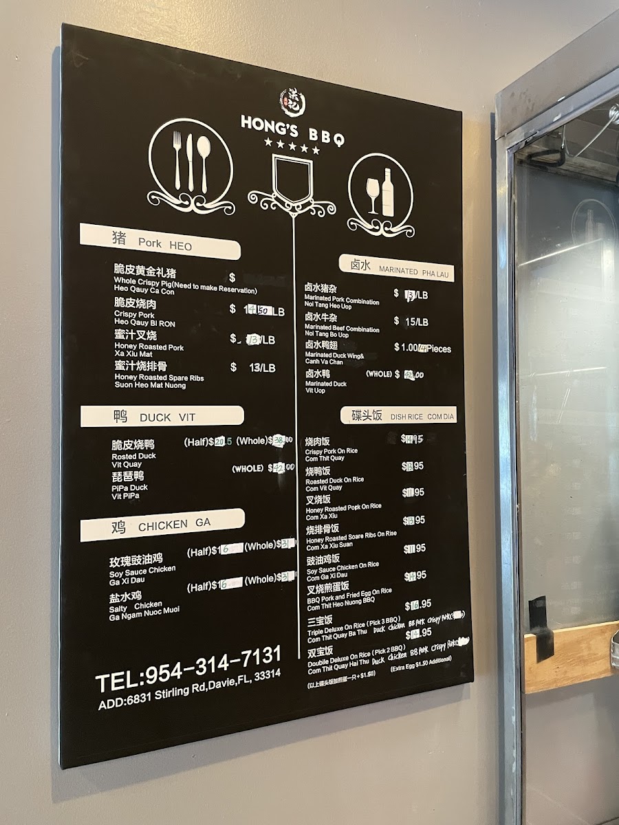 When it comes to delicious, mouth-watering BBQ, Hong’s BBQ Menu has something for everyone. Located at 6831 Stirling Rd, Davie, FL, this spot offers a variety of savory dishes that showcase the bold flavors of authentic barbecue. Whether you’re craving tender ribs, juicy pulled pork, or perfectly seasoned brisket, Hong’s BBQ delivers a comforting experience with every bite.